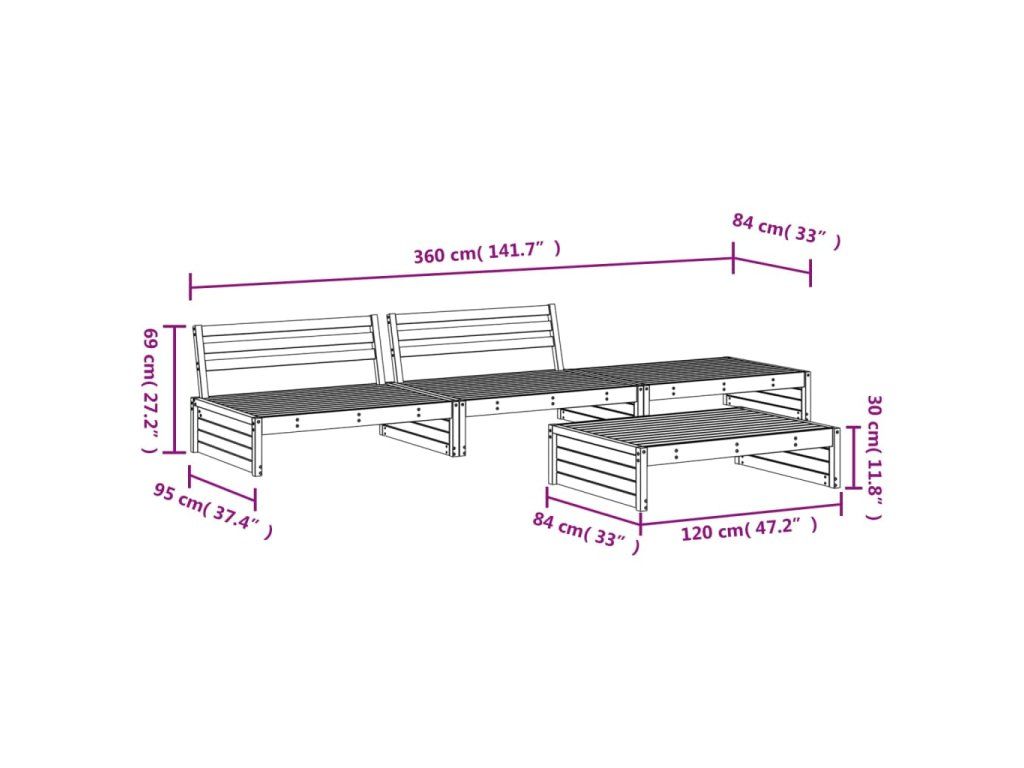 4dílná zahradní sedací souprava impregnovaná borovice 3186633