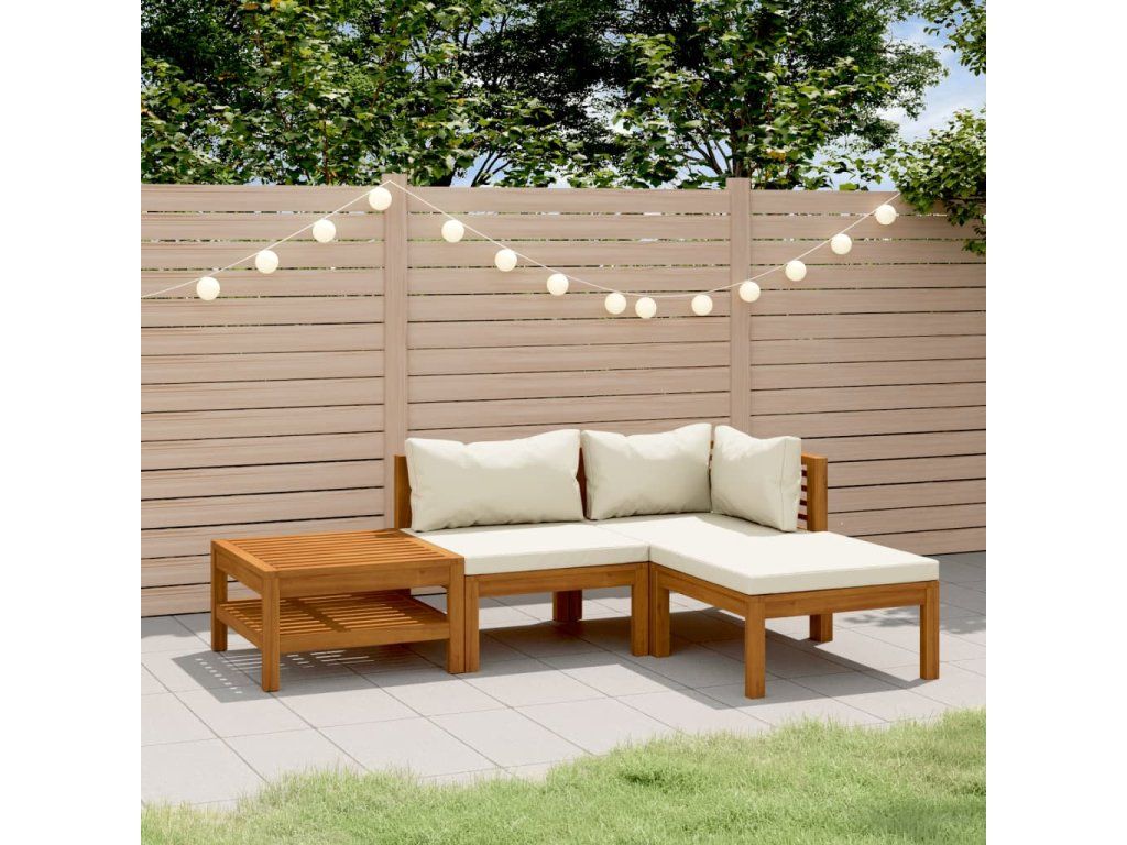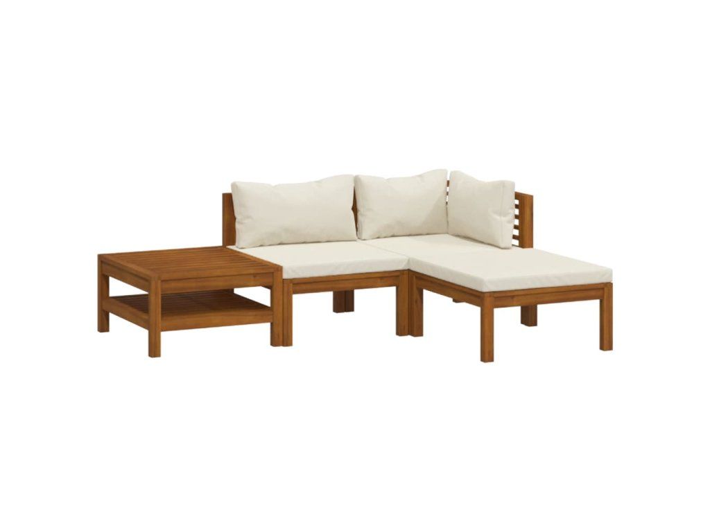 4dílná zahradní sedací souprava krémové podušky masivní akácie 3086925