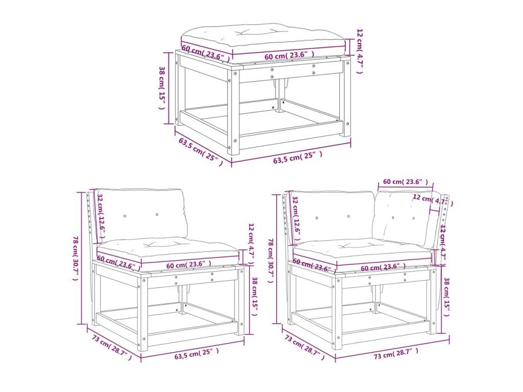 4dílná zahradní sedací souprava podušky voskově hnědá borovice 3216912