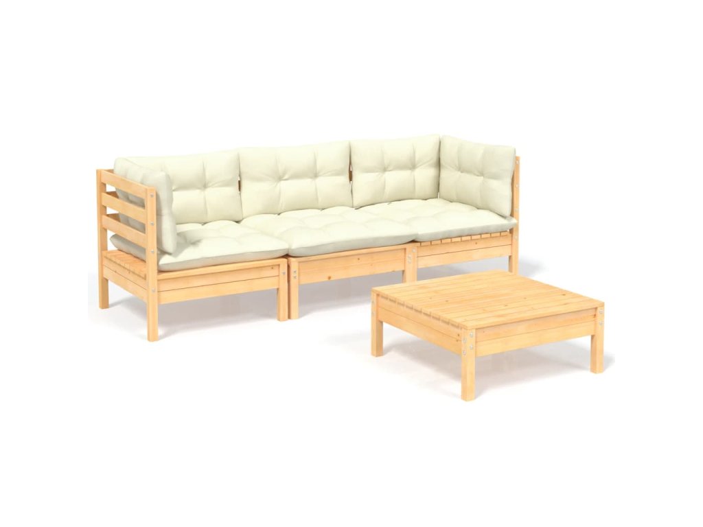 4dílná zahradní sedací souprava s krémovými poduškami borovice 3096106