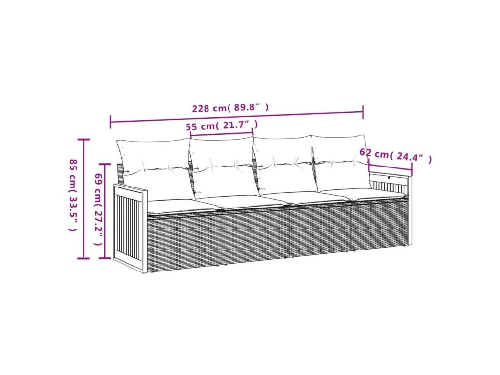 Tato zahradní sedací souprava je dokonalým doplňkem vaší zahrady, terasy nebo dvorku a poskytne vám pohodlné a příjemné místo, kde si můžete povídat s rodinou a přáteli nebo jen tak odpočívat a užívat si pobyt venku.