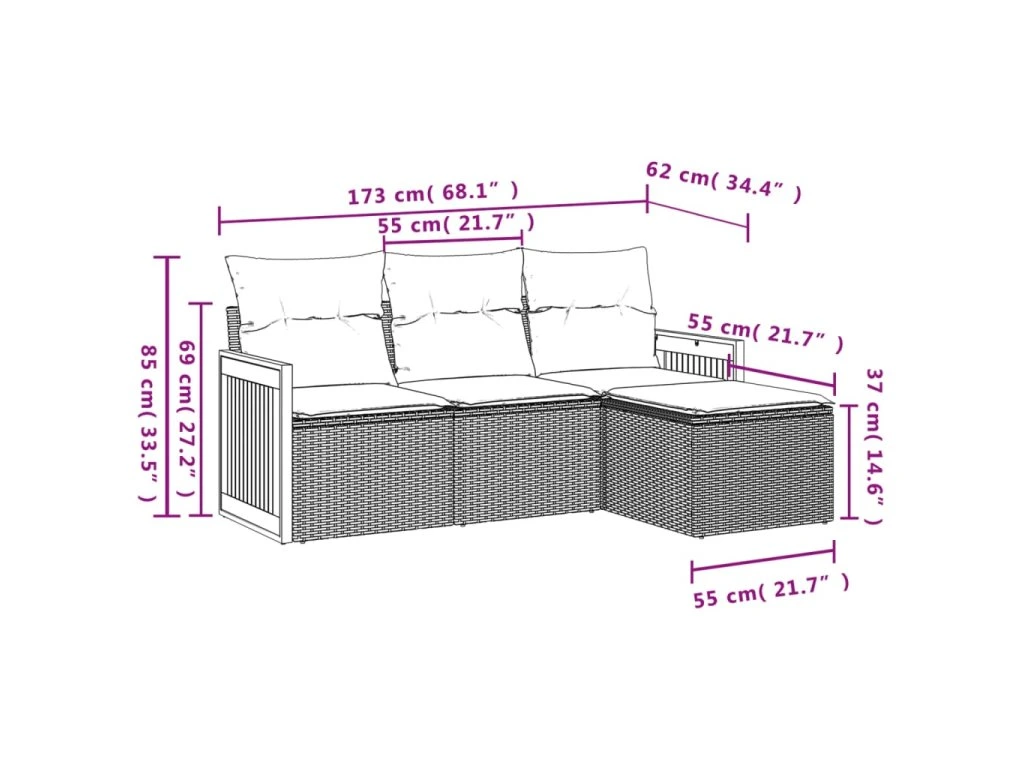 Tato zahradní sedací souprava je dokonalým doplňkem vaší zahrady, terasy nebo dvorku a poskytne vám pohodlné a příjemné místo, kde si můžete povídat s rodinou a přáteli nebo jen tak odpočívat a užívat si pobyt venku.