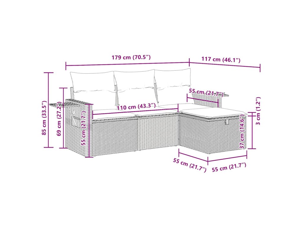 Tato zahradní sedací souprava je dokonalým doplňkem vaší zahrady, terasy nebo dvorku a poskytne vám pohodlné a příjemné místo, kde si můžete povídat s rodinou a přáteli nebo jen tak odpočívat a užívat si pobyt venku.