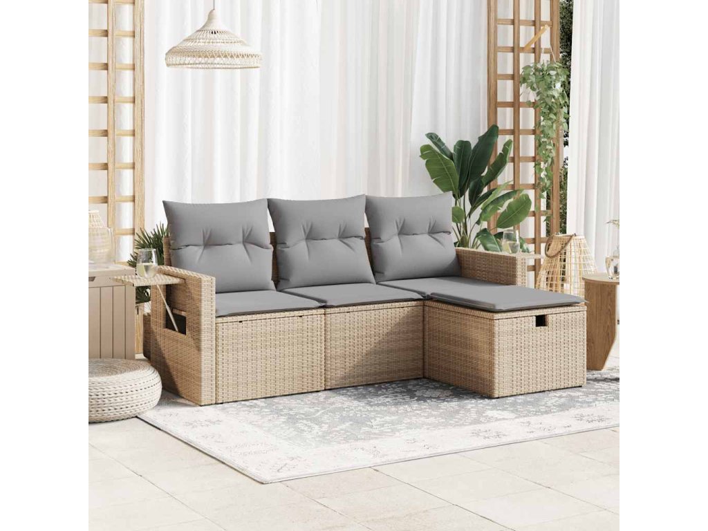 4dílná zahradní sedací souprava s poduškami béžová polyratan 3325455