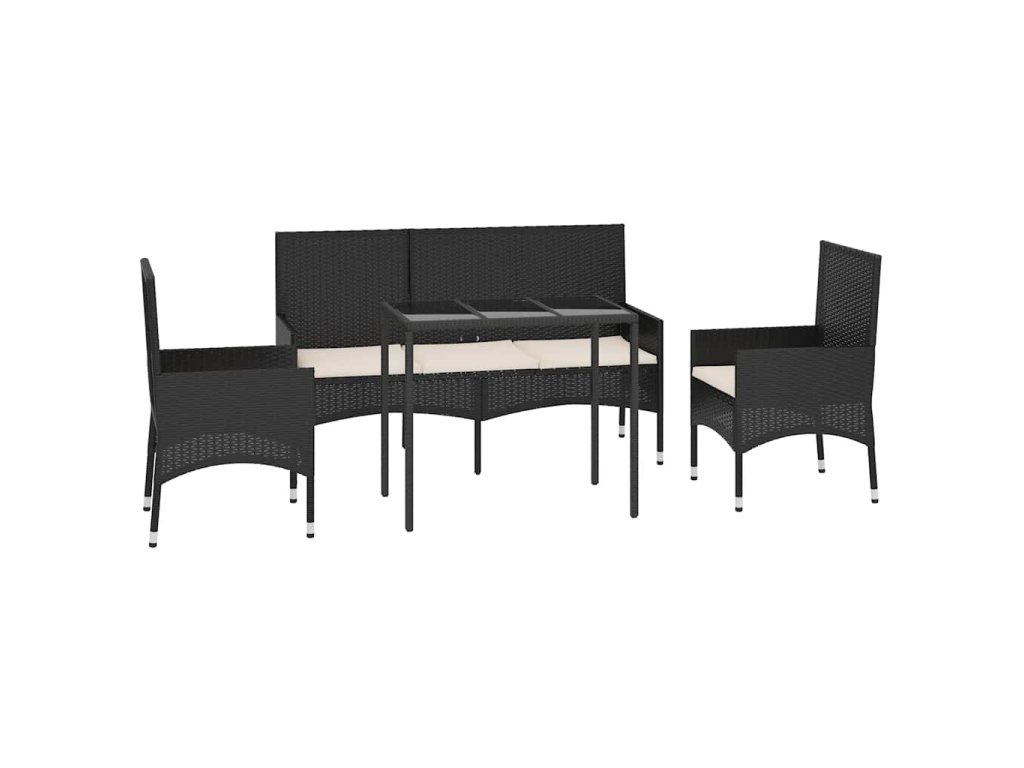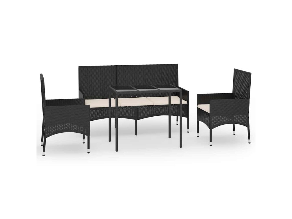 4dílná zahradní sedací souprava s poduškami černá polyratan 319504