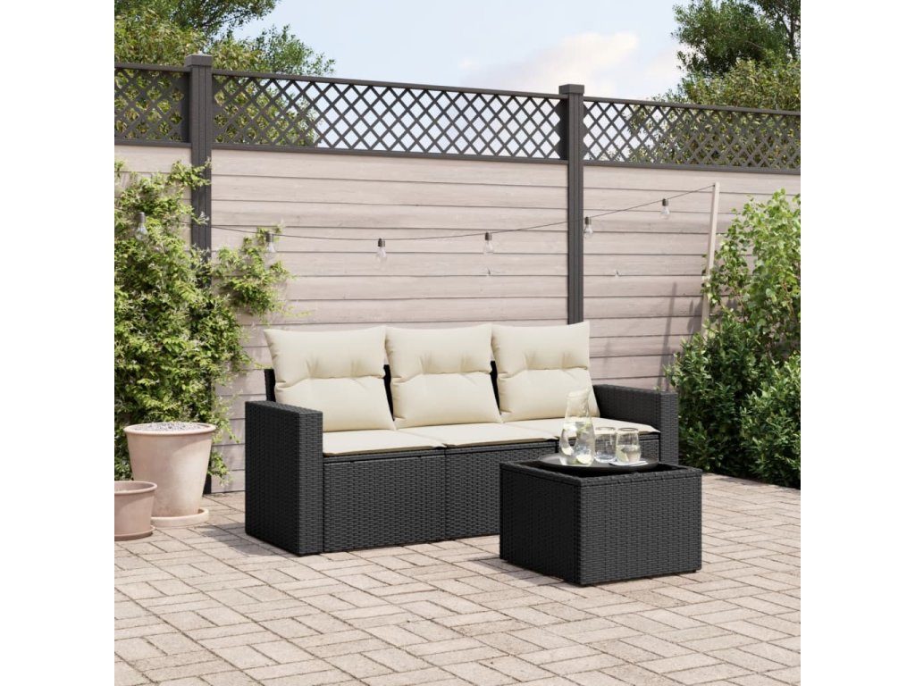 4dílná zahradní sedací souprava s poduškami černá polyratan 3218656