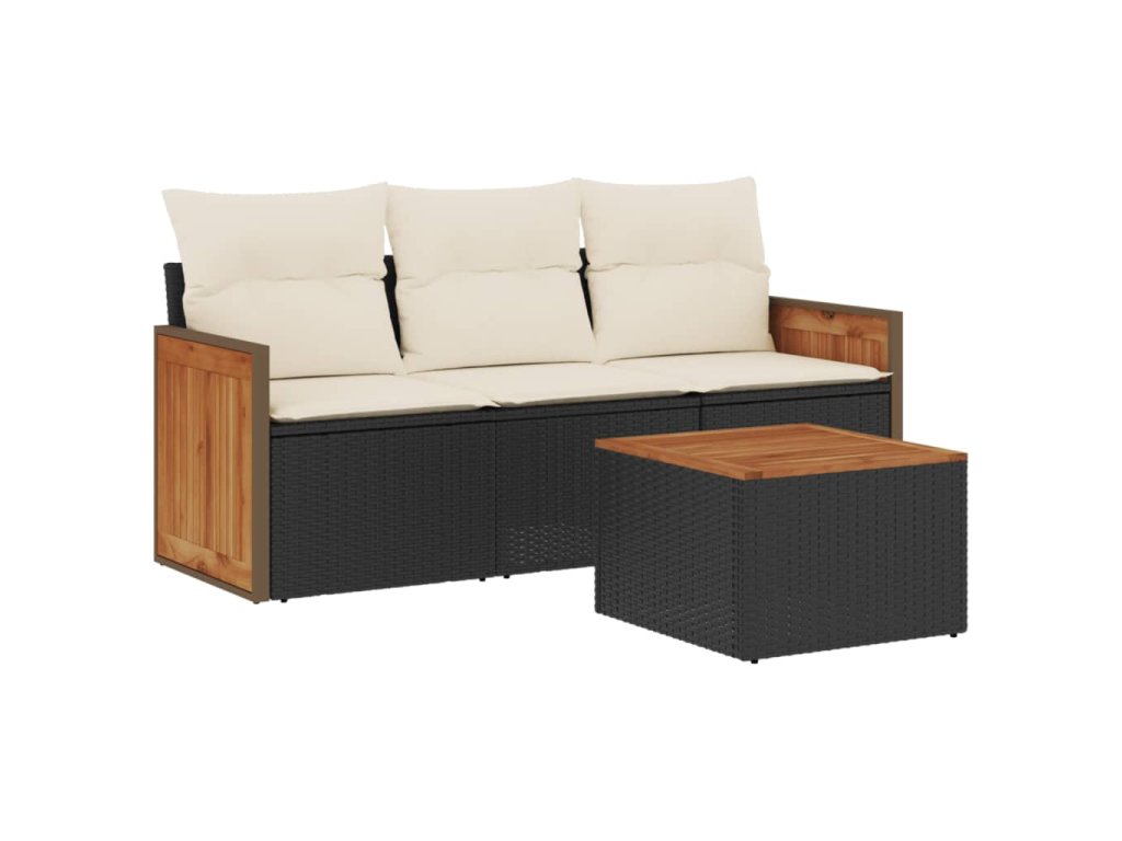 4dílná zahradní sedací souprava s poduškami černá polyratan 3227442