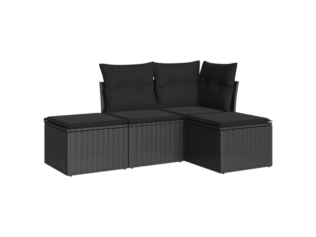 4dílná zahradní sedací souprava s poduškami černá polyratan 3249314