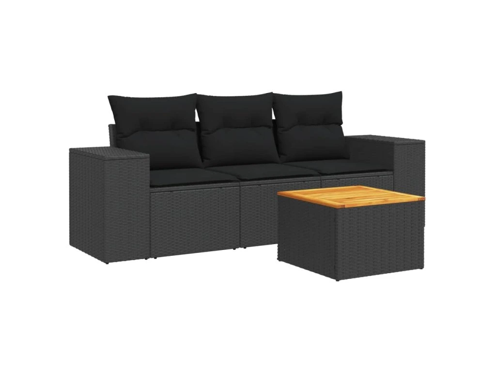 4dílná zahradní sedací souprava s poduškami černá polyratan 3257644