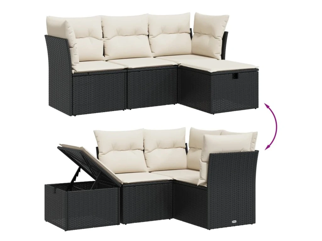 4dílná zahradní sedací souprava s poduškami černá polyratan 3263752