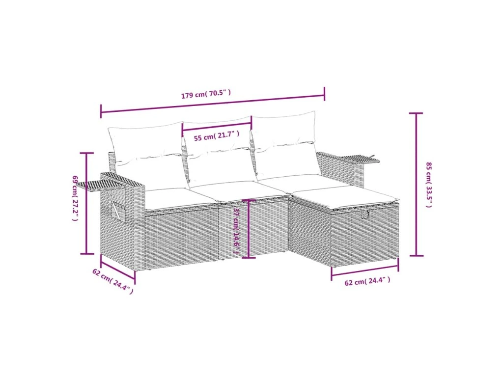 Tato zahradní sedací souprava je dokonalým doplňkem vaší zahrady, terasy nebo dvorku a poskytne vám pohodlné a příjemné místo, kde si můžete povídat s rodinou a přáteli nebo jen tak odpočívat a užívat si pobyt venku.