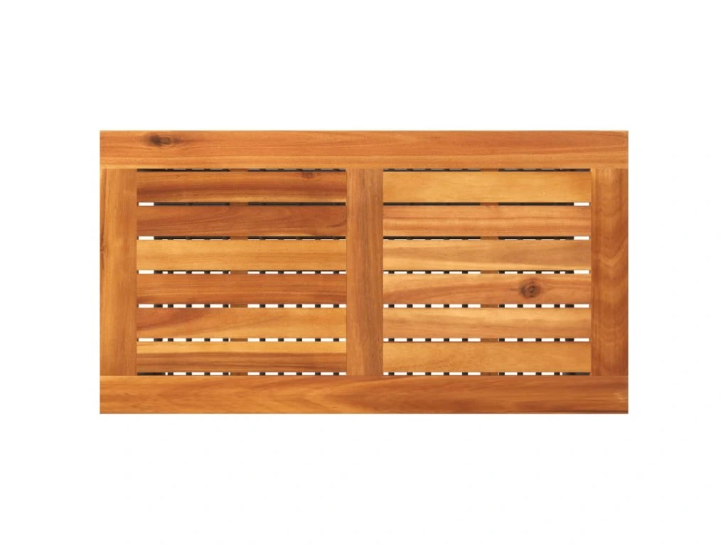 - Stabilní a snadno čistitelná stolní deska: Tento zahradní stolek má desku z akáciového dřeva, která je stabilní, odolná a snadno se čistí vlhkým hadříkem.