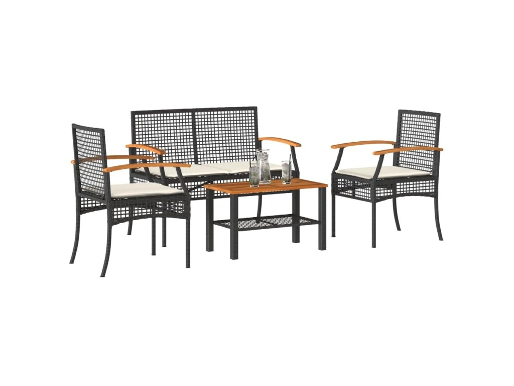 4dílná zahradní sedací souprava s poduškami černá polyratan 366266