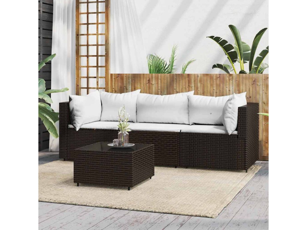 4dílná zahradní sedací souprava s poduškami hnědá polyratan 319751