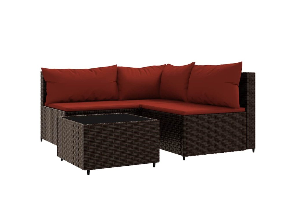 4dílná zahradní sedací souprava s poduškami hnědá polyratan 319813