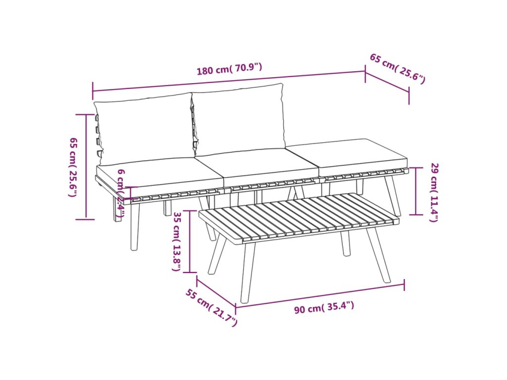 - Rozměry středové pohovky: 60 x 65 x 65 cm (Š x H x V)