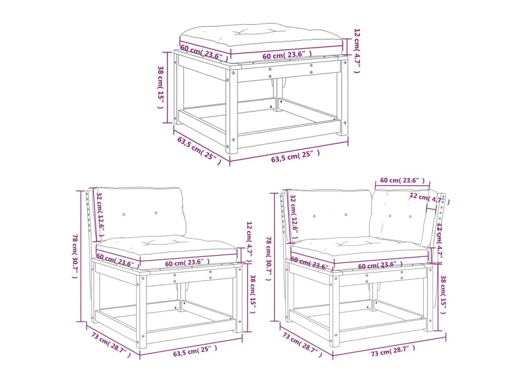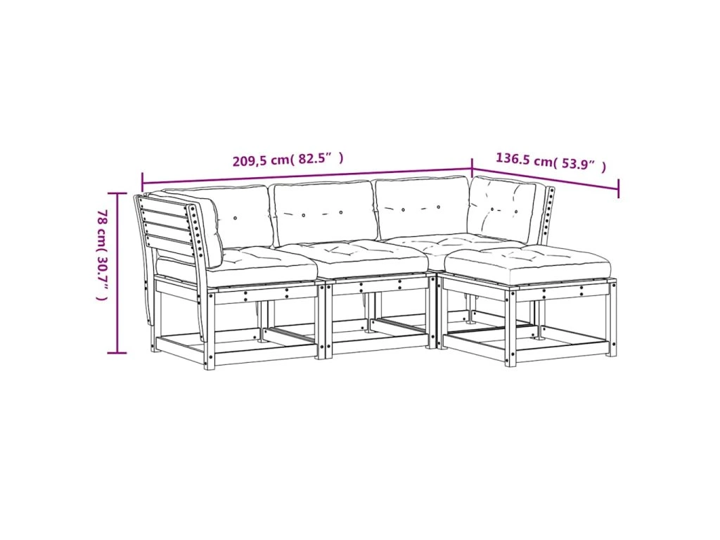 4dílná zahradní sedací souprava s poduškami masivní borovice 3216910