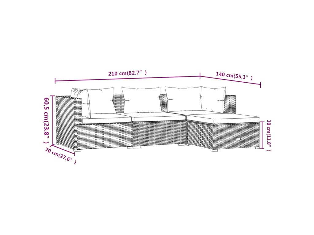 4dílná zahradní sedací souprava s poduškami polyratan černá 3101639