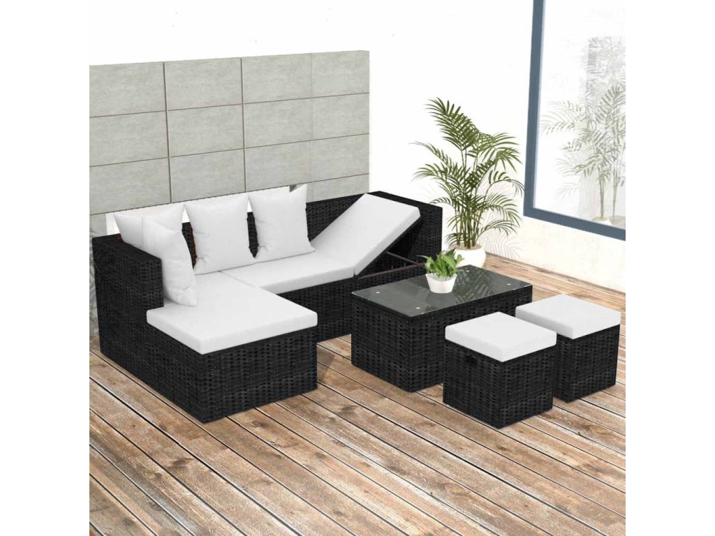 4dílná zahradní sedací souprava s poduškami polyratan černá 42586