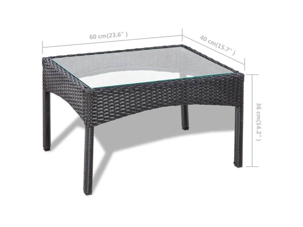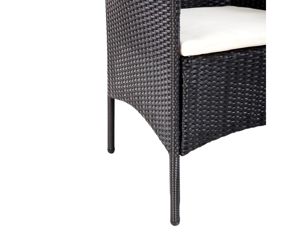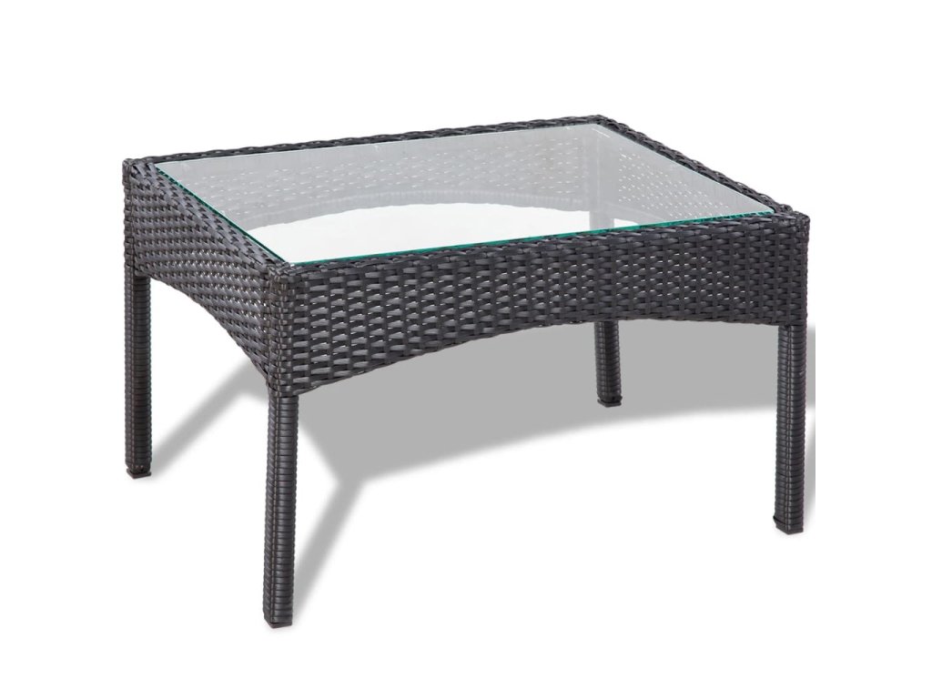 - Materiál: PE (polyetylenový) ratan + ocelový rám s práškovým nástřikem + skleněná stolní deska