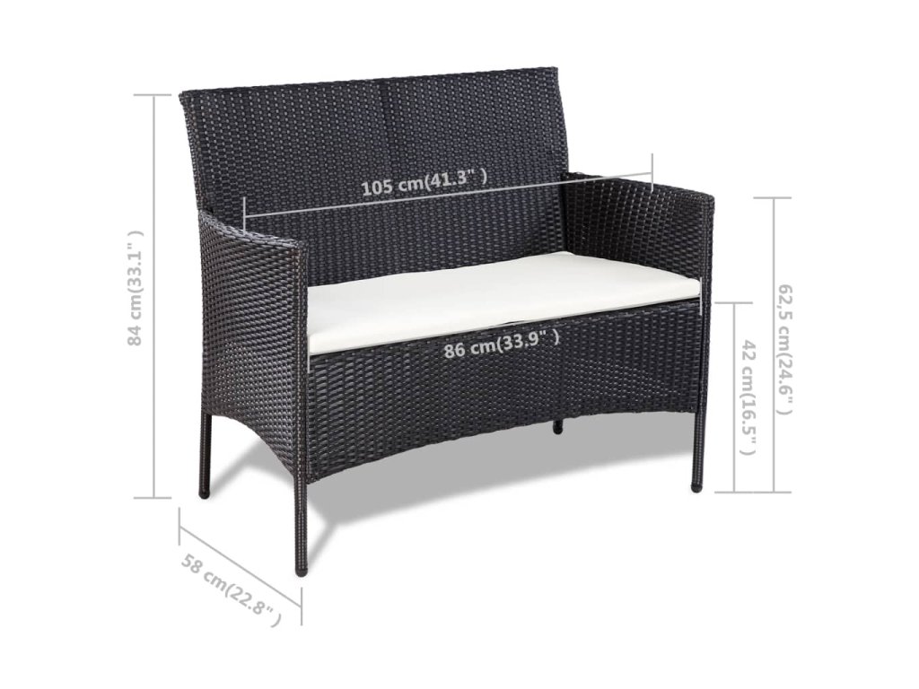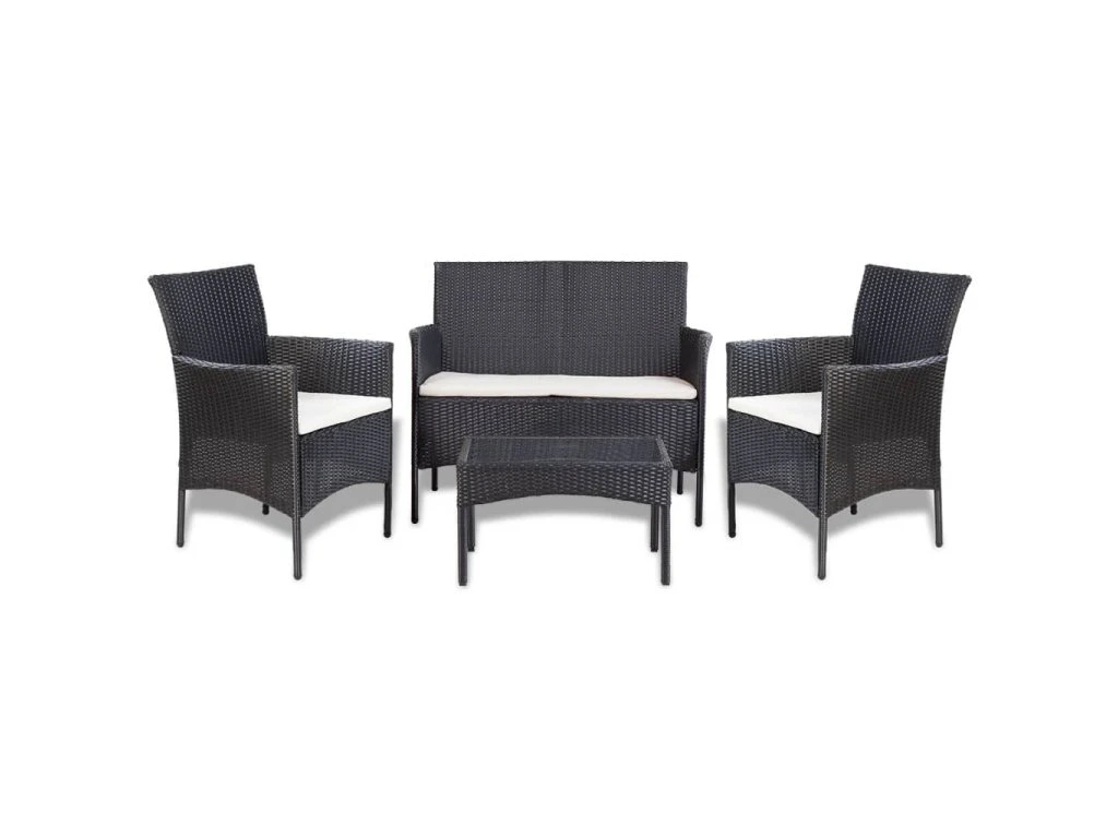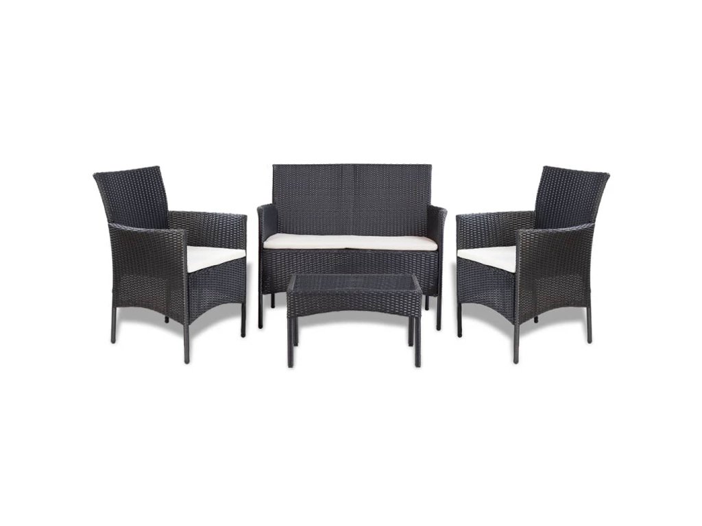 4dílná zahradní sedací souprava s poduškami polyratan černá 44186