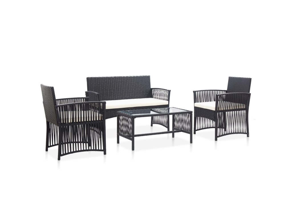 4dílná zahradní sedací souprava s poduškami polyratan černá 46434