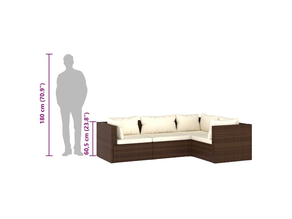 4dílná zahradní sedací souprava s poduškami polyratan hnědá 3101674