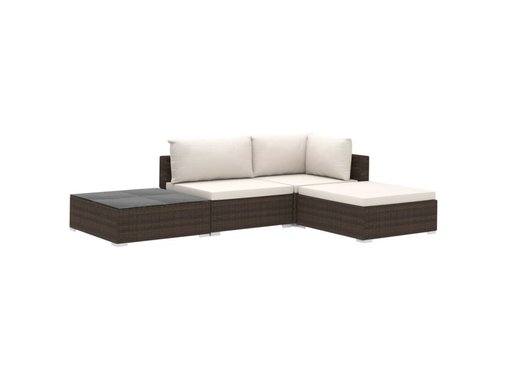 Balení obsahuje 1 rohovou pohovku, 1 středovou pohovku, 1 taburet, 1 čajový stolek, 3 podušky na sedák a 3 podušky na opěradla. Poznámka: Doporučujeme soupravu za deště, sněhu a mrazu přikrýt.