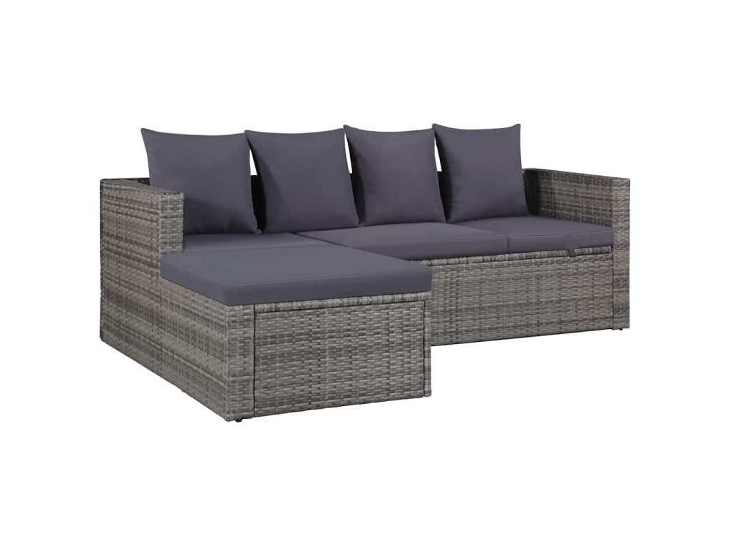 4dílná zahradní sedací souprava s poduškami polyratan šedá 43956