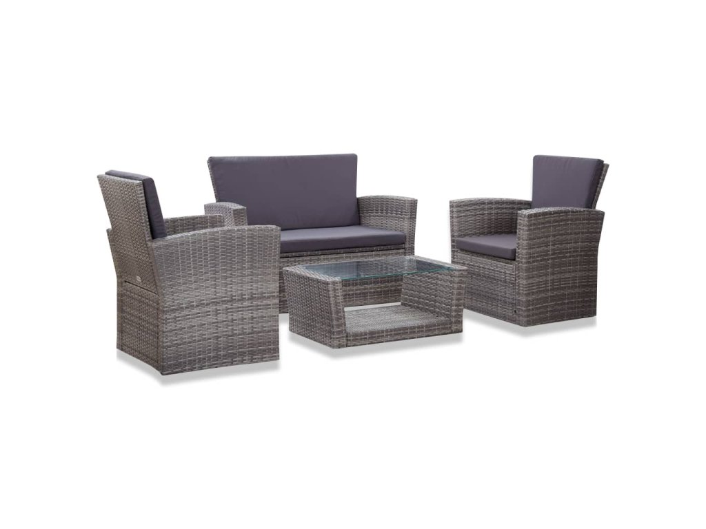 4dílná zahradní sedací souprava s poduškami polyratan šedá 46086