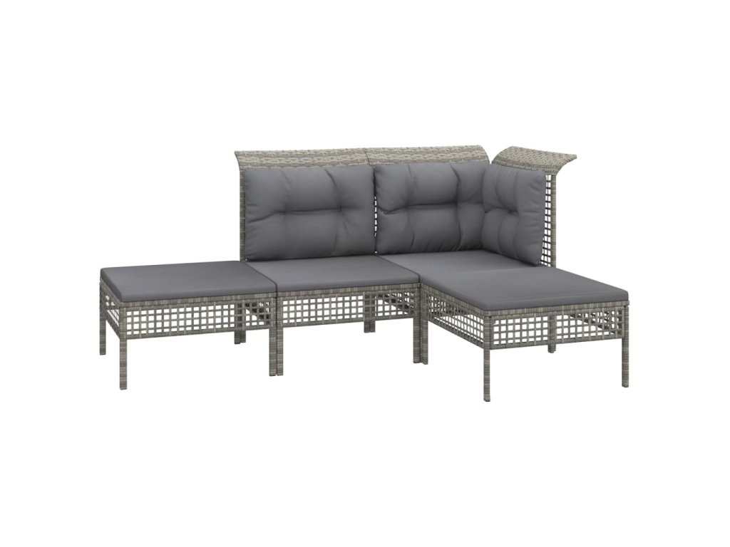 4dílná zahradní sedací souprava s poduškami šedá polyratan 319662