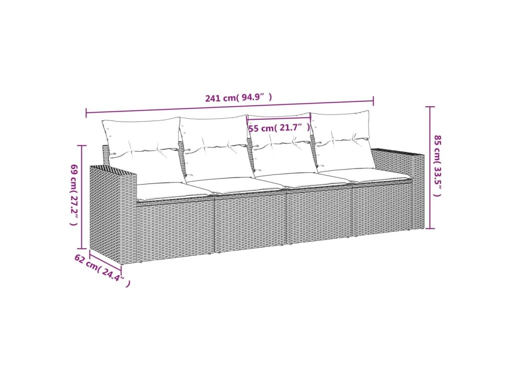 Tato zahradní sedací souprava je dokonalým doplňkem vaší zahrady, terasy nebo dvorku a poskytne vám pohodlné a příjemné místo, kde si můžete povídat s rodinou a přáteli nebo jen tak odpočívat a užívat si pobyt venku.