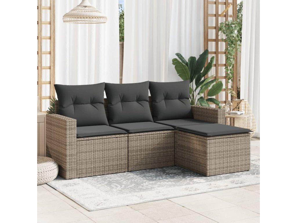 4dílná zahradní sedací souprava s poduškami šedá polyratan 3218860