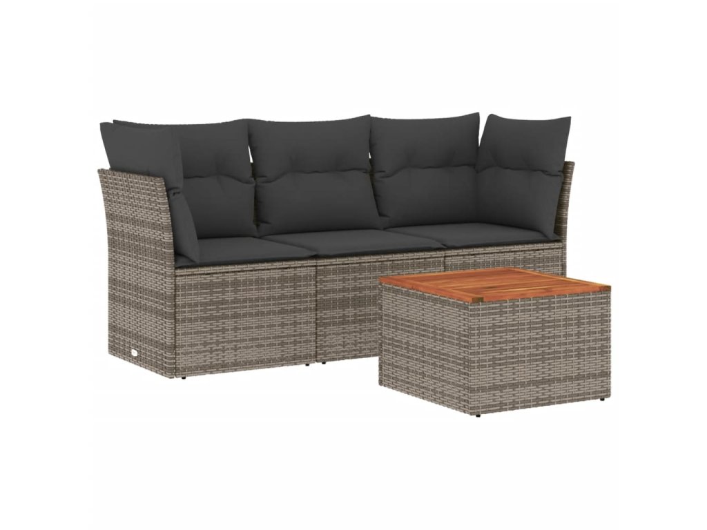 4dílná zahradní sedací souprava s poduškami šedá polyratan 3223470