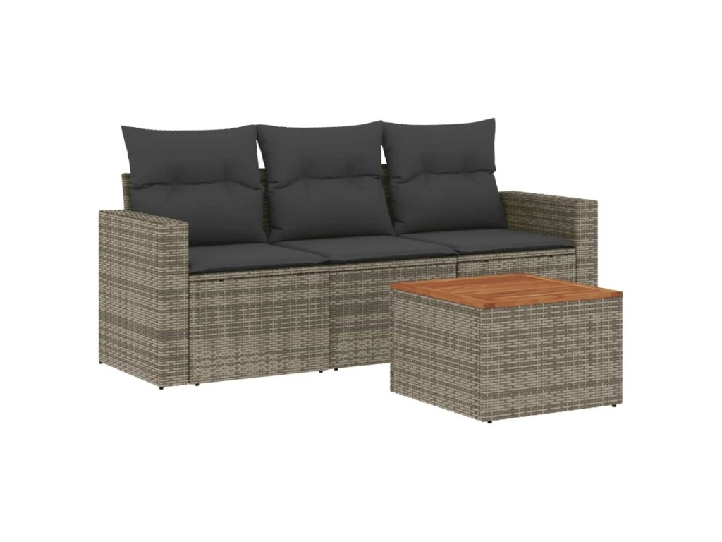 4dílná zahradní sedací souprava s poduškami šedá polyratan 3256326