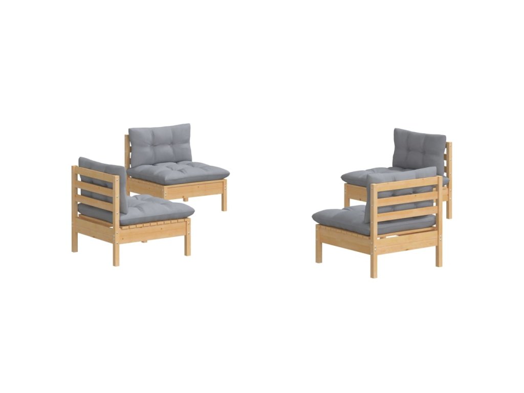 4dílná zahradní sedací souprava s šedými poduškami borovice 3096027