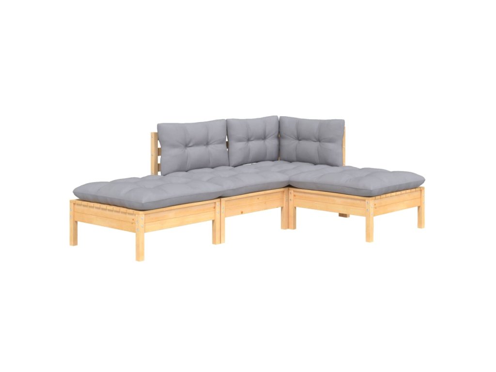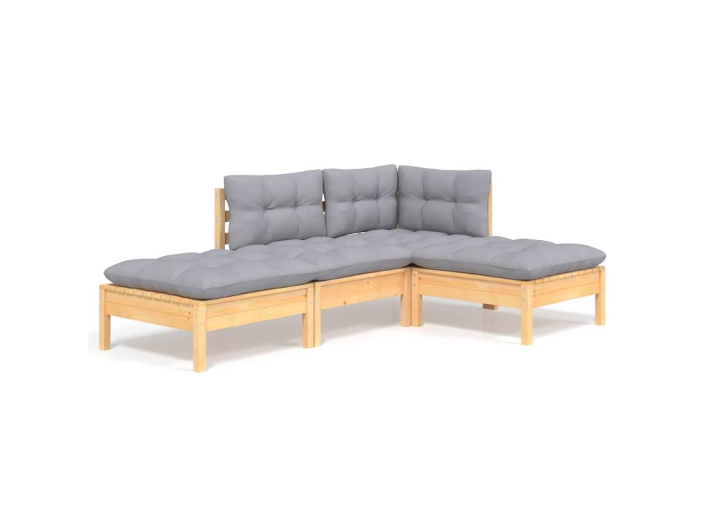 4dílná zahradní sedací souprava s šedými poduškami masivní borovice 3096285