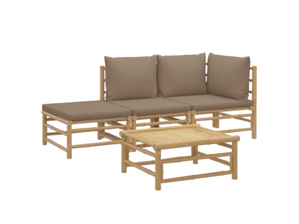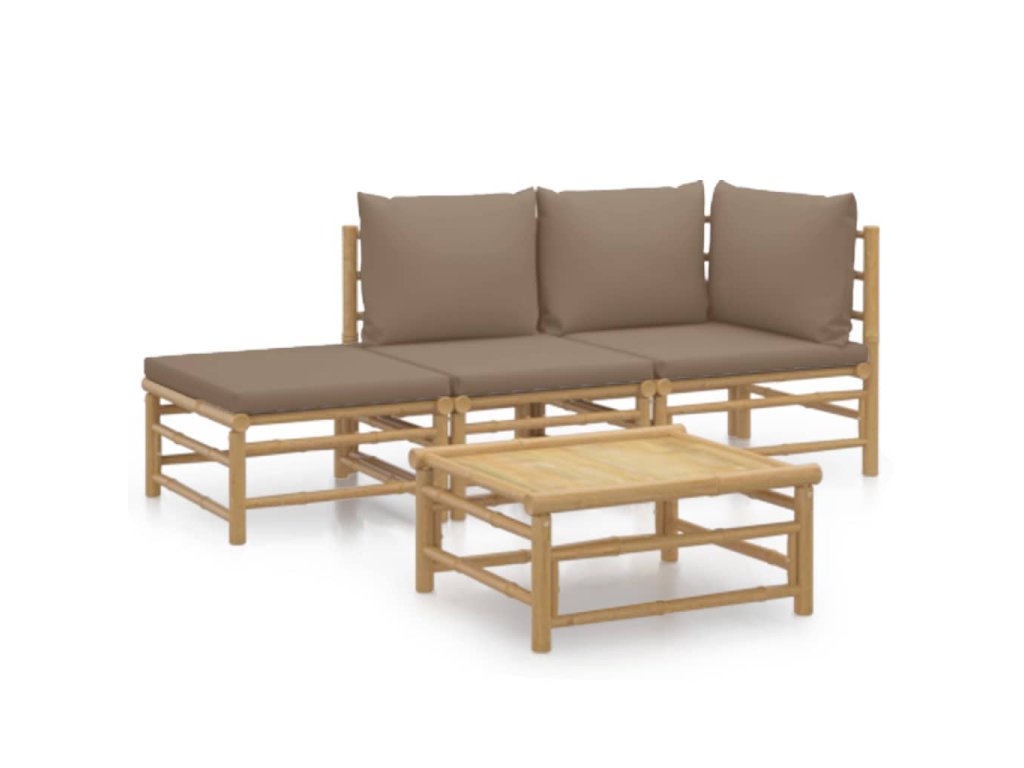 4dílná zahradní sedací souprava s taupe poduškami bambus 3155112