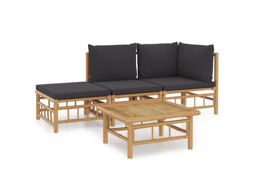 4dílná zahradní sedací souprava s tmavě šedými poduškami bambus 3155208