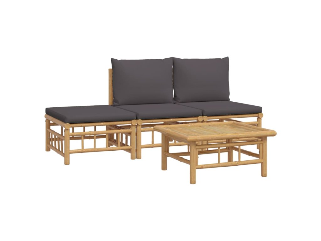 4dílná zahradní sedací souprava s tmavě šedými poduškami bambus 3155235
