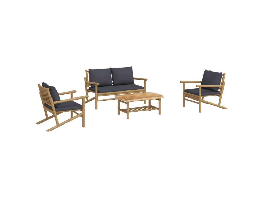4dílná zahradní sedací souprava s tmavě šedými poduškami bambus 3156470