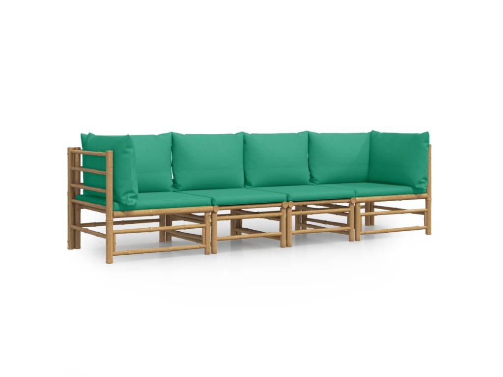 4dílná zahradní sedací souprava se zelenými poduškami bambus 3155152