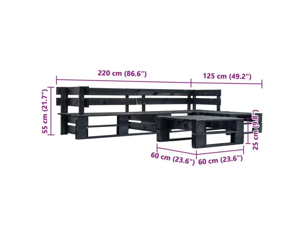 4dílná zahradní sedací souprava z palet černá dřevo 277424