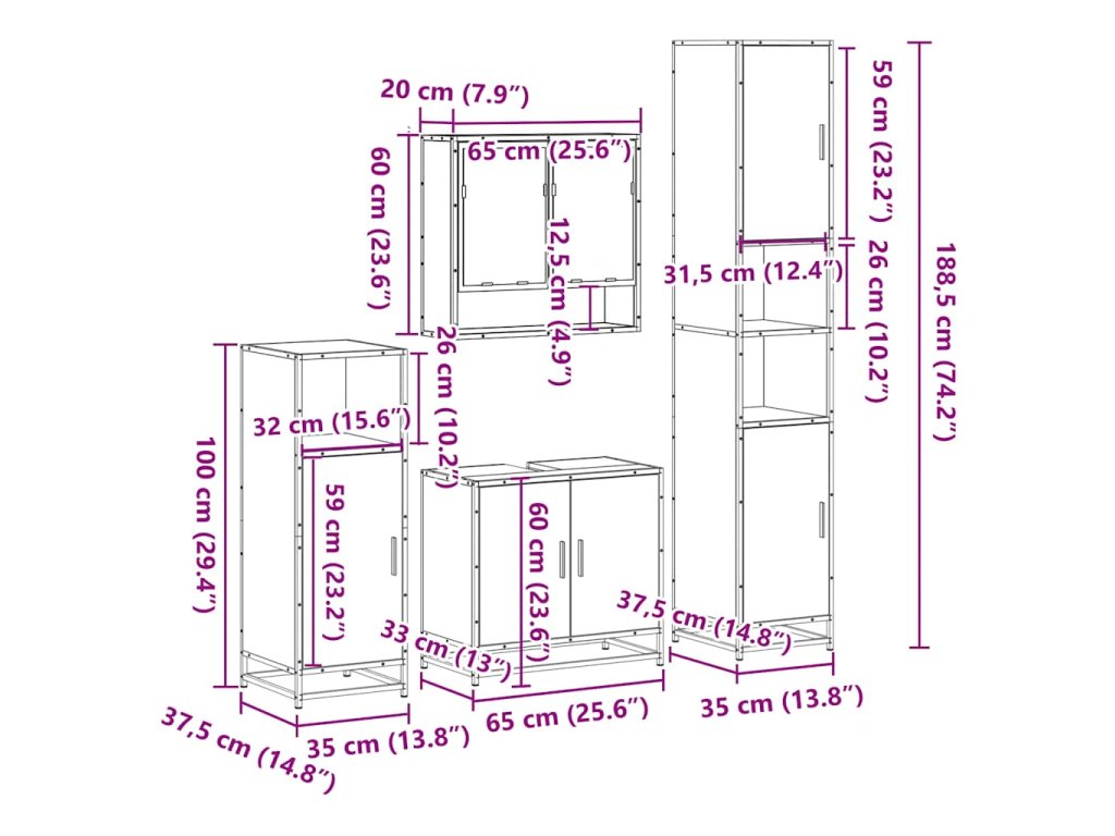 4dílný set koupelnového nábytku dub sonoma kompozitní dřevo 3301216