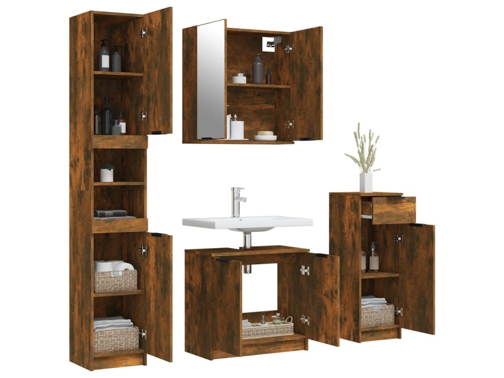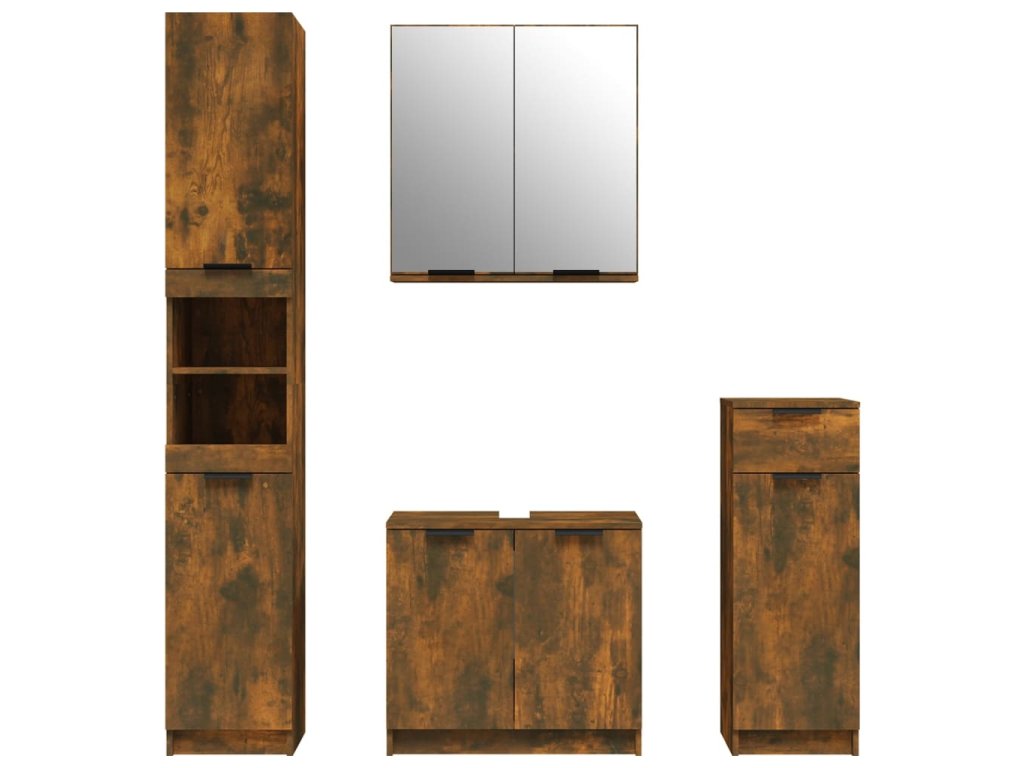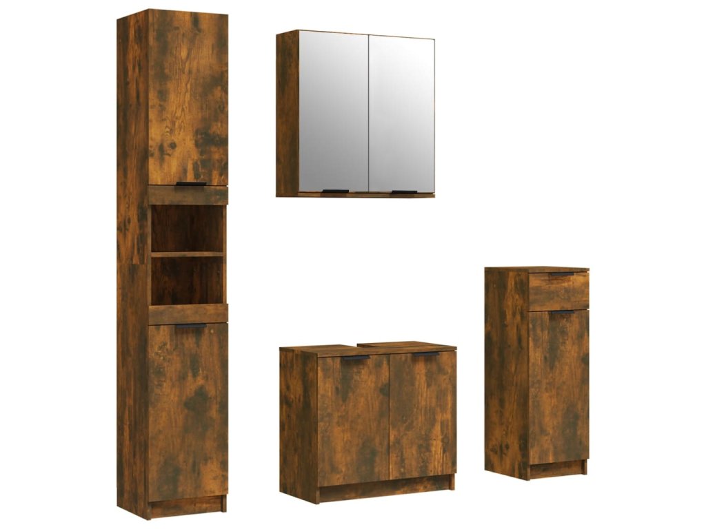 4dílný set koupelnových skříněk kouřový dub kompozitní dřevo 3115889