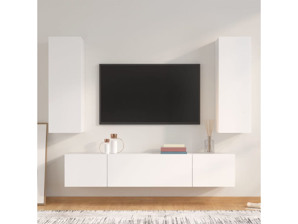 4dílný set TV skříněk bílý kompozitní dřevo 3114198