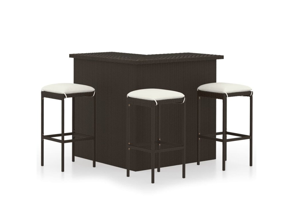 4dílný zahradní barový set s poduškami polyratan hnědý 3064922