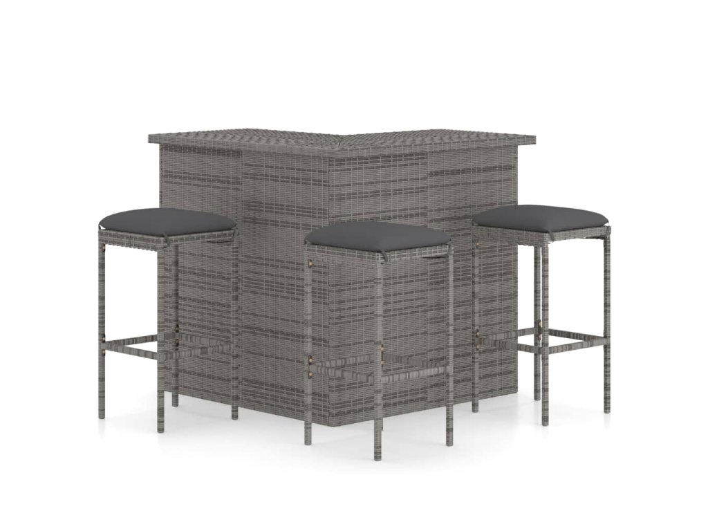 4dílný zahradní barový set s poduškami polyratan šedý 3064924