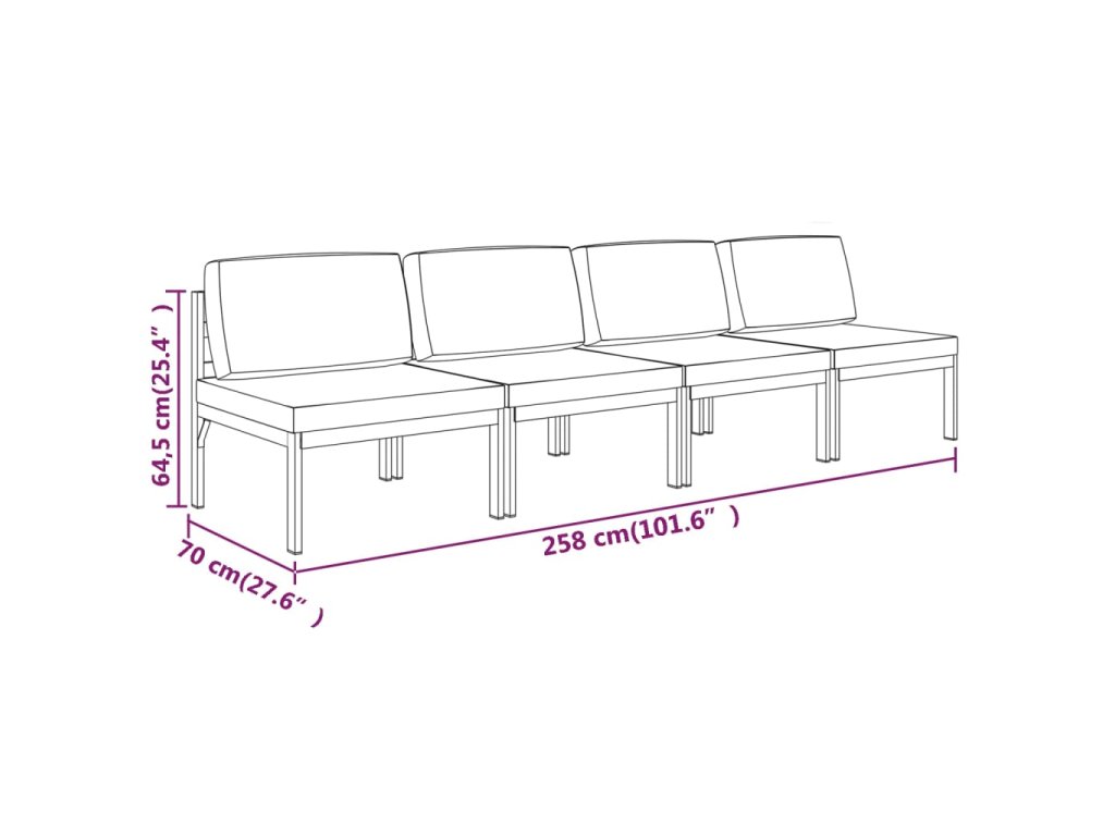 Tato hliníková 4místná zahradní pohovka v sobě kombinuje styl s funkčností a pomůže vám vytvořit dokonalé místo k odpočinku, abyste si mohli svůj volný čas užívat v naprostém pohodlí.