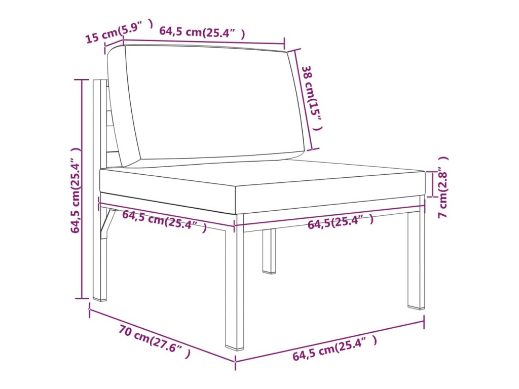 - Rozměry středové pohovky (jednotlivé): 64,5 x 70 x 64,5 cm (Š x H x V)